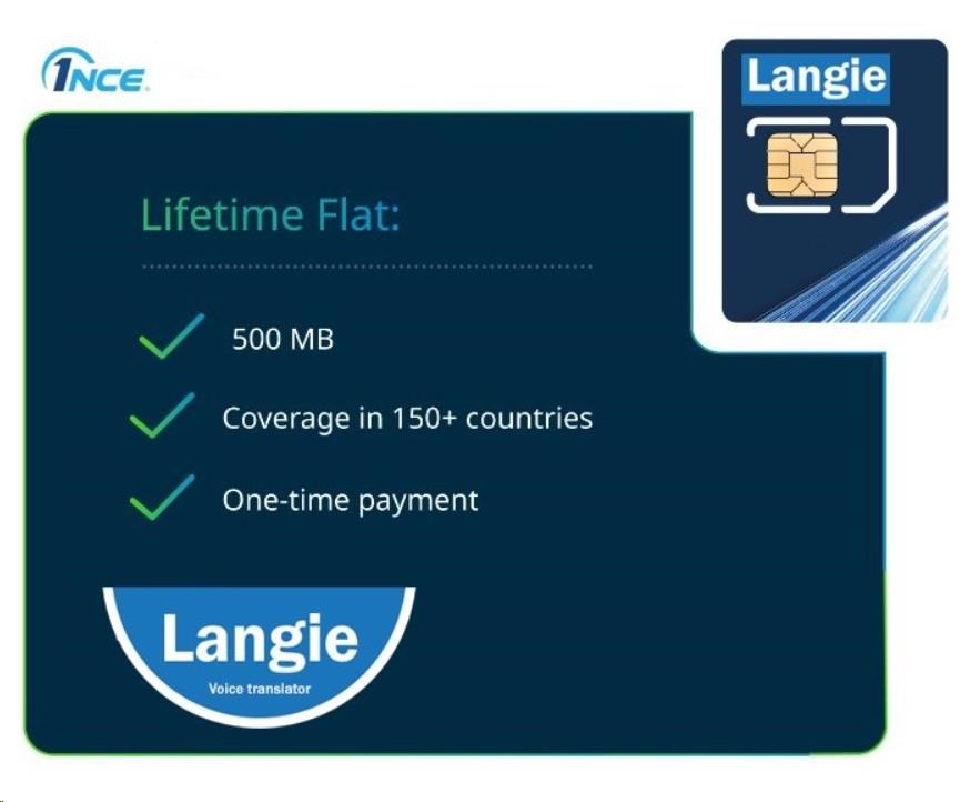 LANGIE ULTRA SIM je ultimátna SIM karta s predplateným objemom dát 500MB s podporou - 2G/3G/4G/LTE pre preklad v 150 krajinách s platnosťou do 10 rokov (alebo do vyčerpania dát).