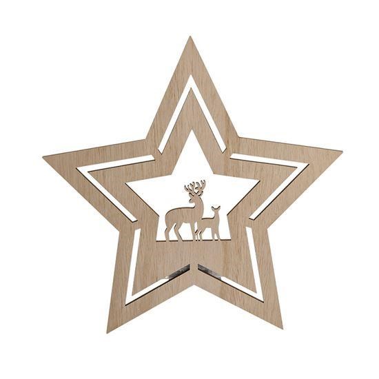 LED nástěnná dekorace s motivem hvězdy počet LED diod: 24 barva světla: teplá bílá (žlutá) napájení: 2x AA baterie (nejsou součástí) výdrž baterií: cca 72hodin (v závislosti na kvalitě baterií) třída ochrany: IP20 (vnitřní použití) rozměr: 30 x 30 x 2,5cm materiál: dřevo barva: hnědá balení: barevná krabice