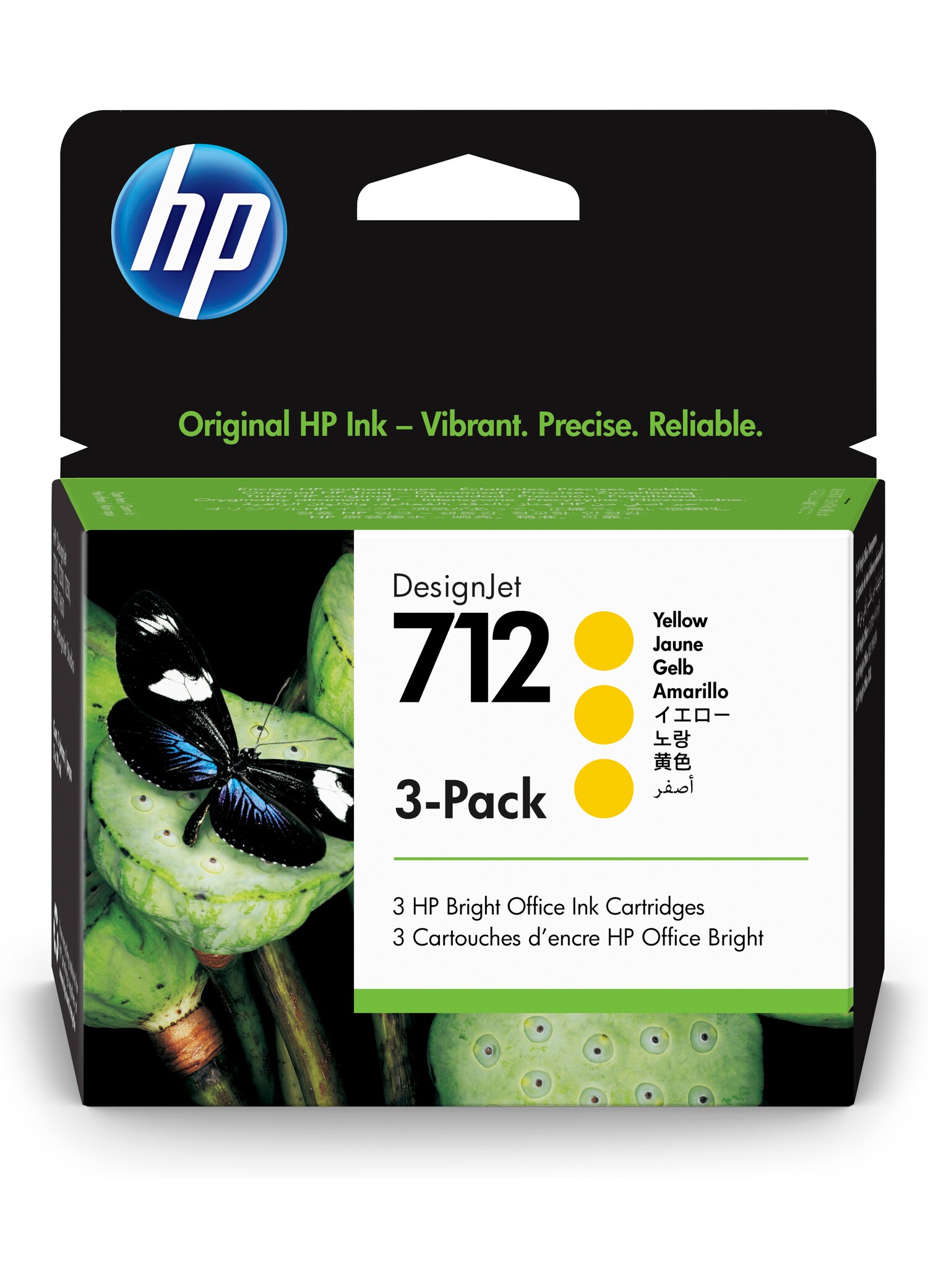 Trojbalení žlutých inkoustových kazet HP 712 DesignJet, 29 ml