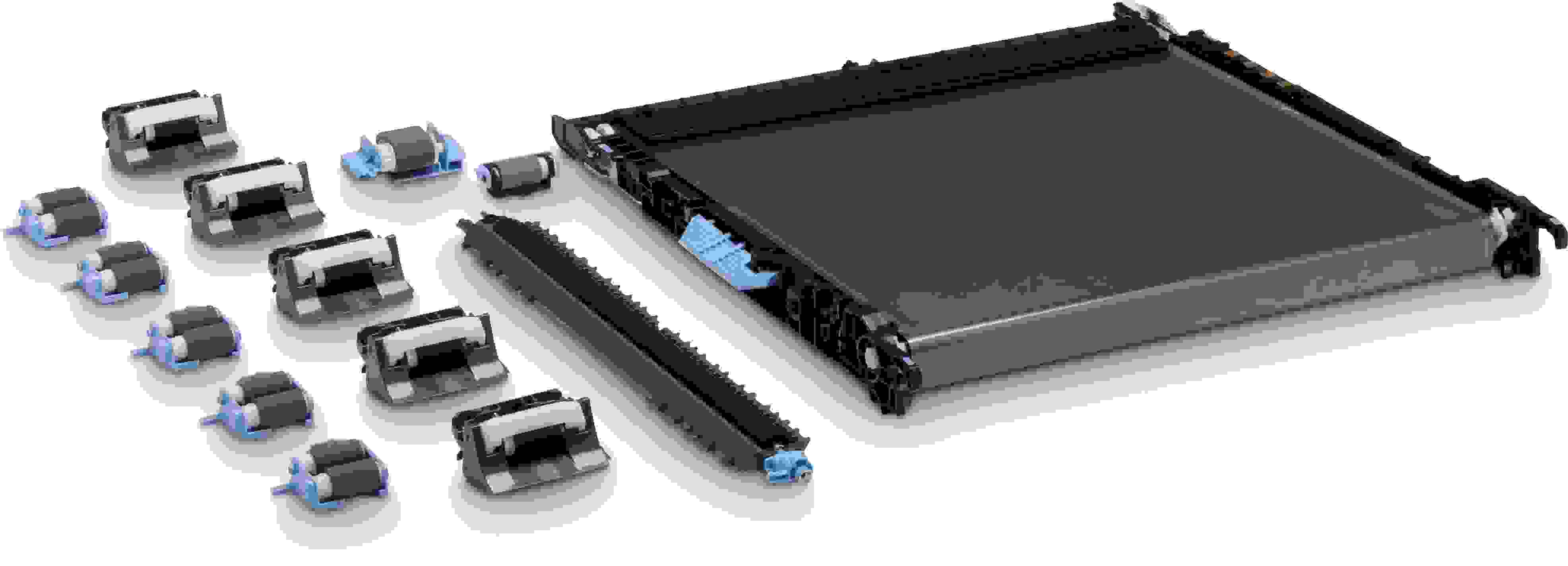 Přenosový pás HP LaserJet Intermediate; Válec T2; Podávací a oddělovací válec; Zásobník MP; Zásobník 2–X; Instalační příručka; Průvodce recyklací