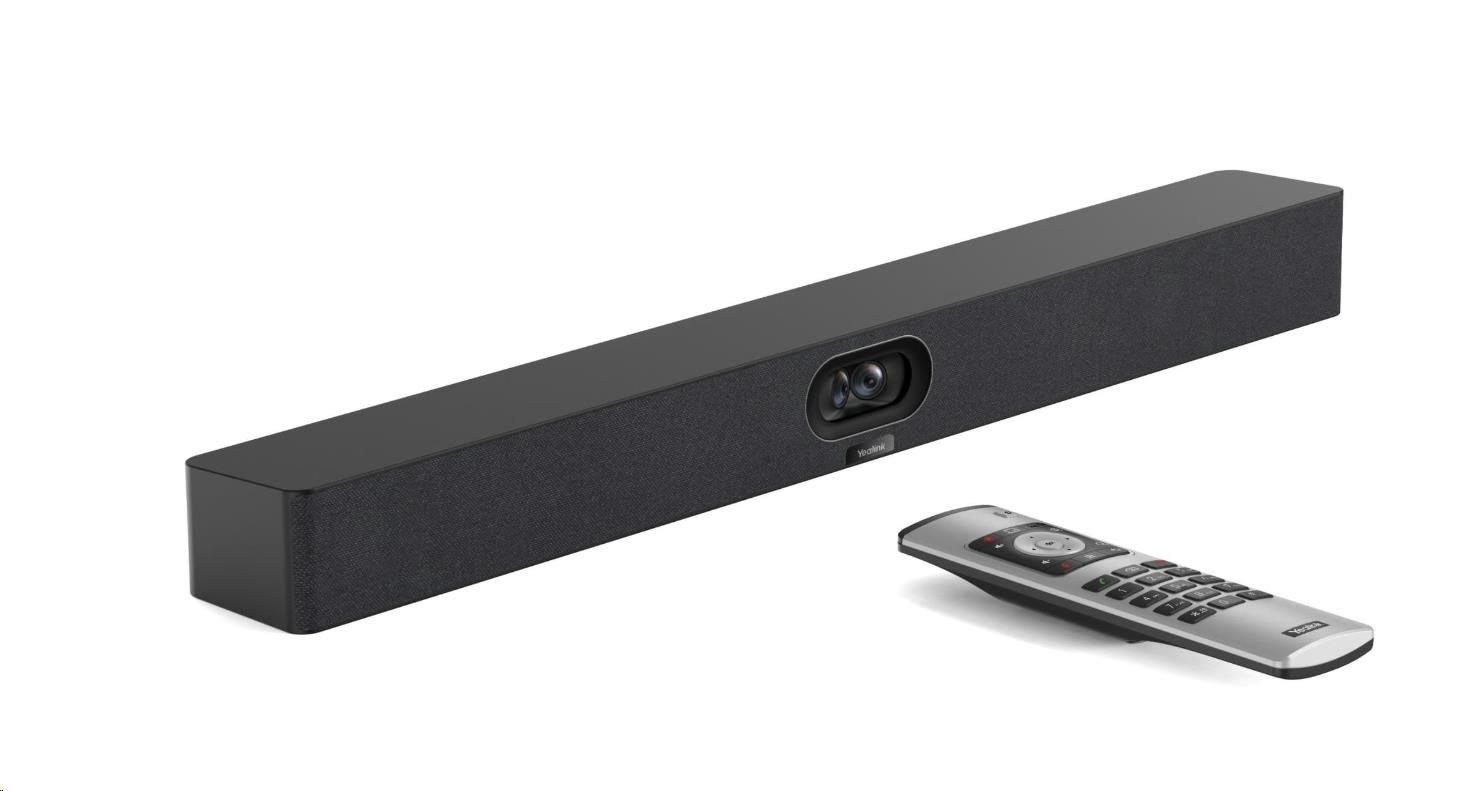 Yealink MeetingBar A40 - zařízení typu All-in-one pro prémiové malé až střední místnosti. Kombinuje snímky ze dvou 48MP objektivů, poskytuje obraz s vyššími pixely a poskytuje jasnější kvalitu obrazu. Obsahuje také vestavěné 2 stereo reproduktory, 8x MEMS mikrofonní pole a podporuje 2 další rozšiřující mikrofony jako volitelné příslušenství. Inteligentní technologie redukce šumu poskytuje skvělý zvukový zážitek.