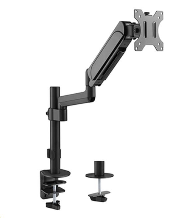 Díky odolné ocelové konstrukci poskytuje stabilní podporu pro jeden monitor s úhlopříčkou 17" až 32" a hmotností až 9 kg. Flexibilní konstrukce pro dostatečné nastavení výšky a pozorovacích úhlů s možností nastavení orientace monitoru na výšku nebo na šířku. Součástí balení jsou průchodky a svorky pro instalaci na téměř jakoukoliv pracovní plochu. Odnímatelná deska VESA pro uživatelsky přívětivou instalaci. Součástí balení jsou kabelové spony pro usnadnění organizace vedení kabelů.