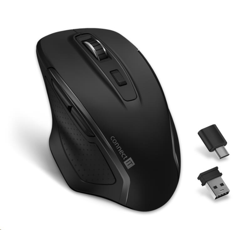 Bezdrátová optická myš s unikátní funkcí SmartSwitch, díky které můžete používat myš střídavě na dvou počítačích nebo noteboocích a libovolně se mezi nimi přepínat. Tato funkce se hodí do domácího i profi kancelářského prostředí, kde se pracuje s jednou myší střídavě na dvou počítačích nebo noteboocích. Jedinečný design myši dovoluje uschovat oba USB Nano příjímače pod krytkou bateriového prostoru ve spodní části myši a zabránit tak jejich ztrátě. Součástí balení je originální alkalická tužková baterie CONNECT IT.