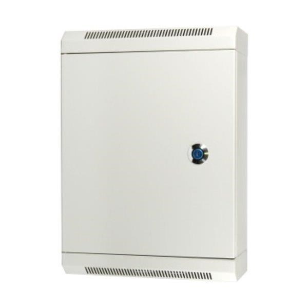 Kovový rozvaděč pro vnitřní instalace s DIN lištou. Rozvaděč je opatřen kovovým zámkem a ventilačními otvory.