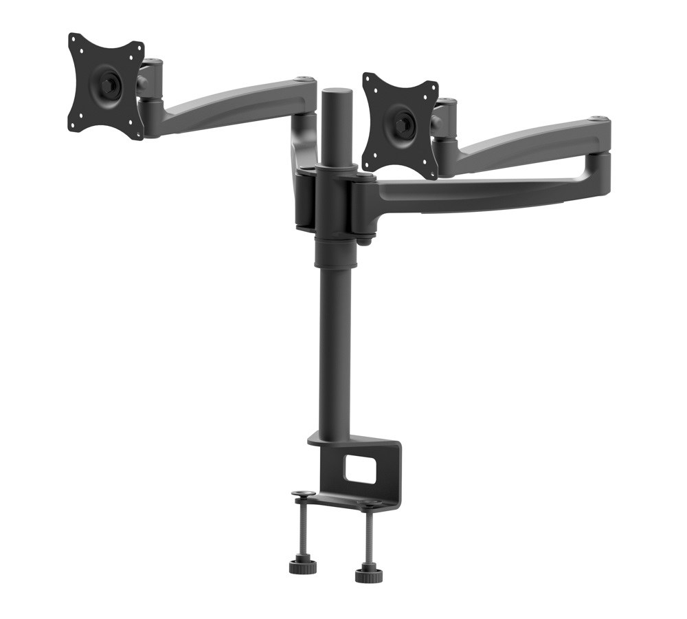 Kancelářský stolní držák na 2 monitory Edbak DM121 Profesionální kancelářský držák na 2 monitory 17-27", otočný +/-180°, sklopný +/-60°, výškové nastavení 100-405mm, délka 0-582mm, pivot, 2 stolové úchyty, VESA 75x75 a 100x100, nosnost 20kg Držáky značky Edbak vždy vynikali svou kvalitou a nastavitelností, nyní i se zaměřením na design, který je reprezentativní a nadčasový. Stolní držák Edbak DM121 je vhodný na všechny typy a značky monitorů, jejichž úhlopříčka 17" až 27". Držák je plně nastavitelný - otáčení do stran, náklon, rotace monitoru (PIVOT), korekce roviny, nastavení výšky a vzdálenosti. Držák podporuje VESA standardy 75x75 a 100x100, nosnost je 20kg. Barevné provedení černé matné, materiál hliník. Záruka 10 let. Profesionální kancelářský stolní držák na dva monitory, plně nastavitelný, nejvyšší kvalita, nadčasový design, záruka 10 let - Edbak DM121 Technické údaje: celková nosnost 20kg (10kg na 1 monitor) podpora VESA standardu 75x75 a 100x100 na všechny typy monitorů s úhlopříčkou 17"-27" otáčení do stran +/- 180° náklon monitoru +/- 60° nastavení vzdálenosti od nosníku 0mm až 582mm nastavení výšky 100mm až 405mm funkce PIVOT - polohování monitoru na šířku nebo na výšku součástí balení jsou 2 stolové úchyty - uchycení na okraj stolu nebo do prostoru stolu uchycení na stolové desky o síle 10mm až 63mm krásný nadčasový design, profesionální kvalita a zpracování snadné nastavení polohy monitorů materiál hliník + litina barevné provedení černé záruka 10 let Profesionální stolní držák na 2 monitory, plně polohovatelný Edbak DM121 Držák na 2 monitory Edbak DM121 podporuje VESA standardy: VESA 75x75 VESA 100x100