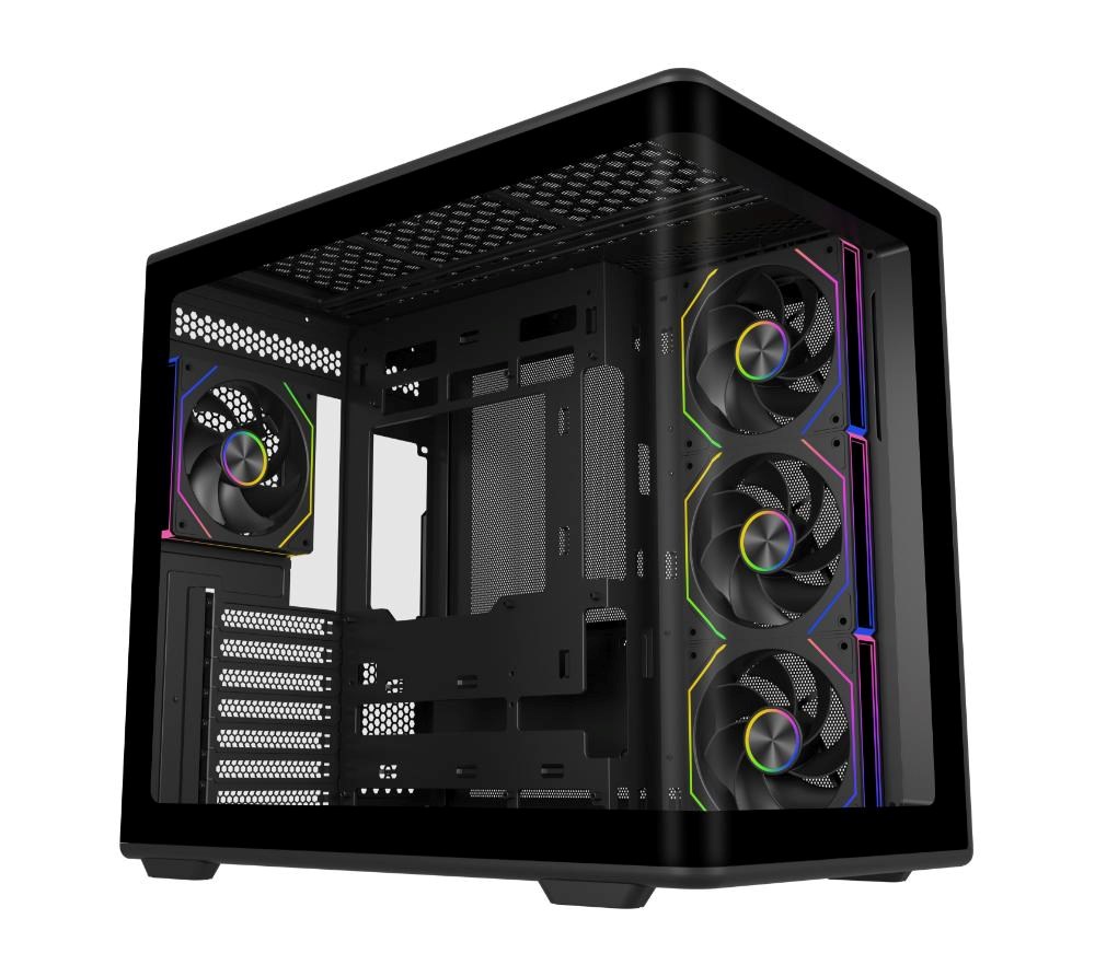 Boční panel z prvotřídního tvrzeného skla poskytuje jasný, ničím nerušený výhled na vaši sestavu a ukazuje vaše komponenty v elegantním, moderním stylu.