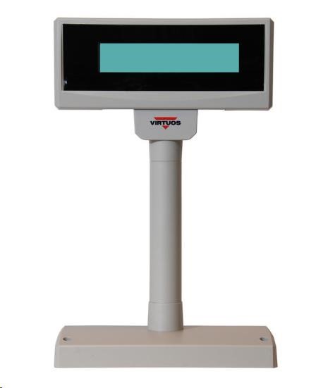 Technické parametry • univerzální zákaznický displej pro pokladní terminály • těžká základna dává displeji výbornou stabilitu, která umožňuje volné umístění, ale je možné displej montovat i napevno • podsvícený zobrazovač LCD (tekuté krystaly) a velké znaky umožňují velký pozorovací úhel a vysoký kontrast zobrazení znaků • komunikuje pomocí standardního sériového rozhraní RS232 • snadné programování pomocí Esc sekvencí • možnost zobrazení osmi uživatelsky definovaných znaků (např. české znaky) • nastavitelný náklon a výška displeje • napájení přímo ze zdroje PC pomocí napájecí redukce 12 V (součást dodávky) nebo z libovolného externího adaptéru 9-25 V, 700 mA • součástí dodávky displeje: datový kabel, redukce pro napájení z PC +12V, stojan, programovací manuál (CZ i EN)