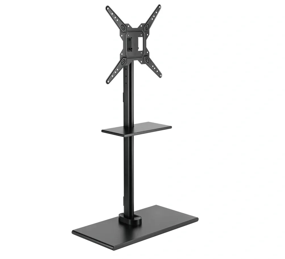 Velmi pěkný televizní stolek / stojan s pevnou stabilní podstavou 700 x 350mm, poličkou na příslušenství 380 x 190mm, držákem na televize i monitory s podporou VESA 100x100 až 400x400 a možností náklonu od +6° / -6° a nosností 35kg. Stojan / stolek FM97-2 je vhodný jak do domácností (obývací nebo dětský pokoj, ložnice), tak i do komerčních prostor (kanceláře, prodejny, stánky, recepce). Barevné provedení černé. Záruka 5 let.
