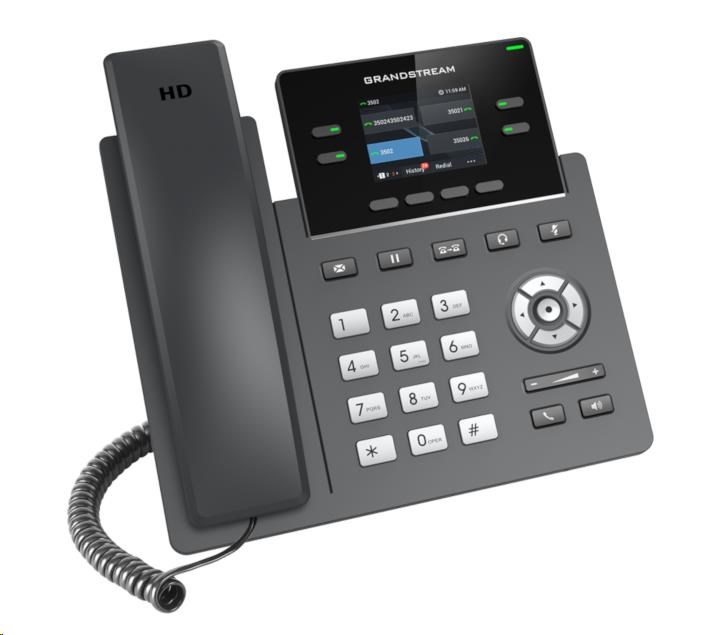 2 SIP účty4 MPK tlačítek s dvoubarevnou LED diodou16 VPK virtuálních BLF tlačítekGRP2612W podporuje dual-band WiFiHD audio s podporou všech hlavních kodeků, včetně širokopásmových kodeků G.722 a OpusVýměnný čelní panel umožňující snadné přizpůsobení loga