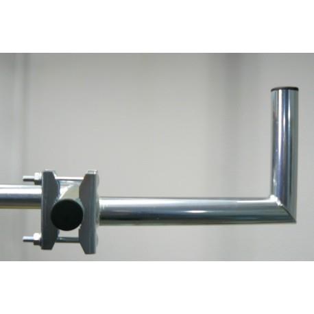 Držák vhodný k připevnění na balkónové zábradlí nebo vodorovnou trubku, pro uchycení satelitních parabol a větších antén.