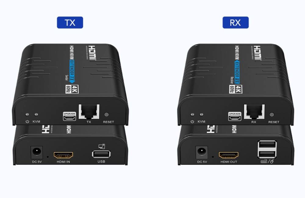 Zařízení umožňuje po jednom síťovém kabelu nebo přes ethernet síť přenést HDMI 4K@60Hz nebo FULL HD 1080p signál a připojit USB periferie, klávesnici,myš nebo dotykovou obrazovku až na vzdálenost 120m nebo 200m při přímém propojení.