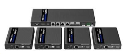 PremiumCord HDMI 1-4 splitter+extender po CAT6/6a/7, UHD 4K@60Hz na 70mMůžete připojit několik HDMI obrazovek k jednomu HDMI zdroji signálu po kabelu CAT6/6a/7,Extender se skládá z jedné vysílací jednotky s lokálním výstupem HDMI a čtyř přijímačů, které se propojí CAT6/6a/7 kabelem s vysílačem.Splitter+extender umožňuje připojit až čtyři HDMI monitory na vzdálenost 70m a zobrazit UHD 4K@60Hz až na 70m- Komplet obsahuje vysílač + 4 přijímače s napájecími zdroji- Vstup: 1x HDMI vstup (Type A)- Výstupy: 1x lokální výstup HDMI a vysílači, 4 x HDMI výstupy (Type A) na přijímačích- Propojení modulů kvalitním kabelem CAT6/6a/7,max.délka 70m, doporučujeme kabel s měděnými vodiči min. AWG23 ( například kód:sutpd6c3 )- Podporuje 3D a rozlišení UHD 4K@60Hz a FULL HD 1080p- Podporuje HDMI2.0, kompatibilní s HDCP2.2- Rezlišení: 4Kx2K@60Hz, 1080p ,1080i- Šířka pásma (MHz): 340 MHz- Max. datový přenos (Gb / s): 4.95- Podporuje standardy: Dolby Digital/Plus, Dolby TrueHD, DTS-HD Master Audio+, DVD-Audio, SA-CD other supported standards: 3D, HDCP, CEC, Full HD (1080i/p), HD ready (720i/p)- Přenáší obraz i zvuk- Přenáší IR signál, podporuje použití IR ovladačů- Podporuje manuální nastavení EDID- Kovové pouzdro pro lepší odvod tepla- Set obsahuje napájecí adaptér na 1x 230V/5V (který napájí všechny jednotky)- Rozměry: TX: 190(L) x 95.9(W) x 23.9(H) mm RX: 71.6×66.6×22.6mm- Balení v papírové krabičceNávod k zapojení:1) Vstup HDMI splitteru zapojte HDMI kabelem do zdroje signálu a výstup zapojte do zobrazovací jednotky nebo monitoru.2) Propojte vysílací jednotku (transmiter) s přijímacími jednotkami (receiver) kvalitním kabelem CAT6/6a/7, doporučujeme kabel s měděnými vodiči min. AWG23 ( například kód:sutpd6c3 )3) Zapojte napájecí adaptery do zásuvky 230V a do zdířky DC 5V.Pokud se obraz po zapojení rozbočovače nezobrazí ihned po zapojení, vyčkejte cca 30s než dojde k rozpoznání HDMI signálu.