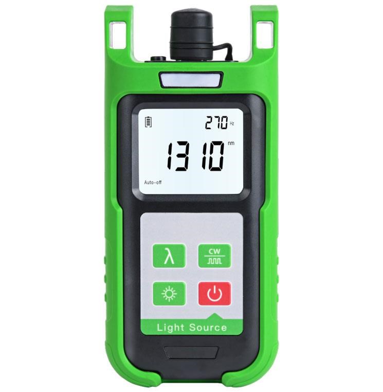 Zdroj optického světla pro měření přímou metodou, který pracuje na vlnových délkách 850/1300/1310/1550 nm. Vlnová délka (nm) 850/1300/1310/1550 Výstupní výkon -5 dB Optický konektor Univerzální 2,5 mm interface + SC Napájení 3x AA Alkalické baterie Stabilita výstupního výkonu ± 0,05dB/15min; ± 0,1 dB/ 8 hod. Modulace CW, 270 Hz, 1 kHz, 2kHz Rozměry 160 x 85 x 45 Hmotnost 220 g