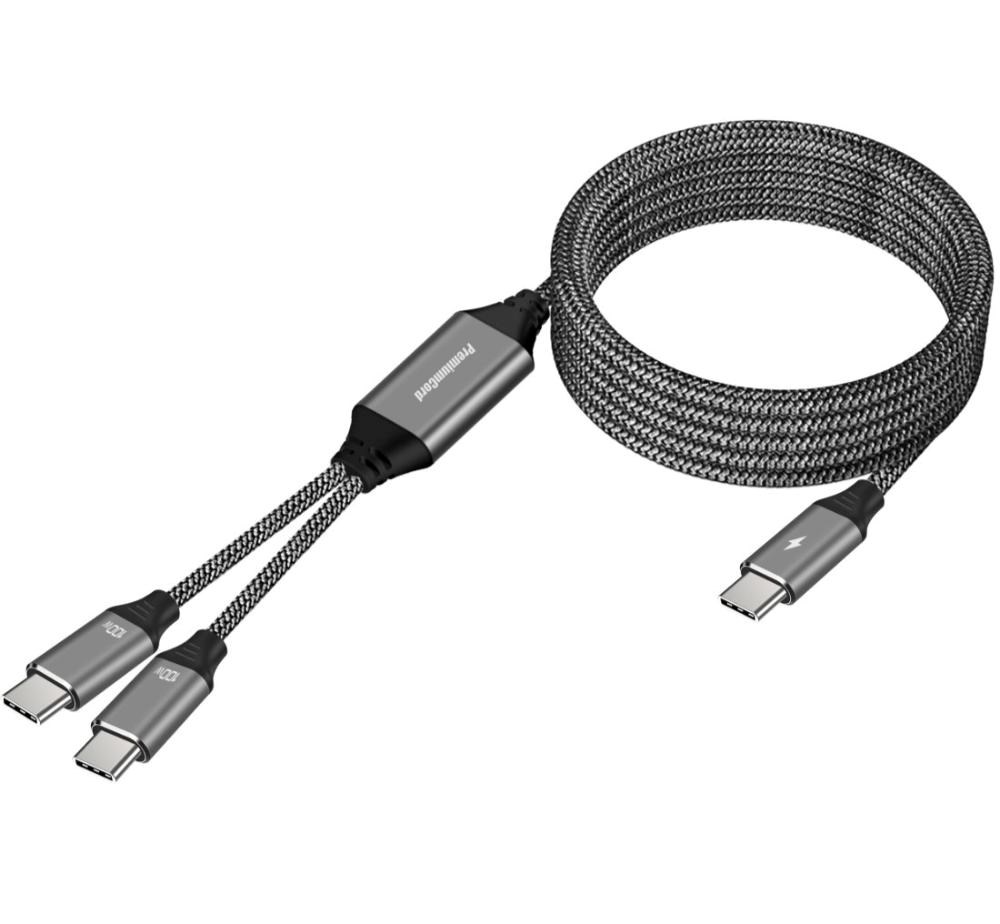 PremiumCord USB-C Inteligentní rychlo nabíjecí kabel s chytrým rozdělením výkonů 1m- Nabíjecí kabel podporuje USB PD3.1 protokol (Power delivery)- Podpora nabíjení a napájení až 20V/5A - 100W- Datový přeno 480Mbps USB2.0- K dipozici dva výstupní konektory, mezi které elektronika inteligentně rozděluje nabíjecí výkon pro větší výkon (notebook) a menší výkon (smartphone)- Za pomoci adaptivního inteligentního řízení alokace výkonu je možné nabíjet dvě zařízení současně účinně a bezpečně.- V příloze je tabulka s popisem inteligentího rozdělení výkonu na dva výstupní konektory.- Robustní nylonová tkanina pro spolehlivou ochranu kabelu- Zalévané konektory v kovovém pouzdře- Stříbrné poniklované konektory- Snadné nabíjení mobilního telefonu, notebooku a dalších přístrojů- Barva kabelu: šedo/bílá- Barva metalických konektorů: matně šedá- Balení PVC sáček s etiketou a EAN kódem- Délka: 1m