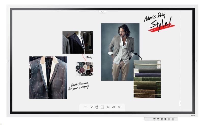 Samsung Flip podporuje rozmanitá řešení pro jednoduché sdílení a úpravu obsahu. Dosáhněte efektivnější spolupráce propojením s dalšími přístroji. Využijte například svá mobilní zařízení a spojte se s displejem bezdrátově i pomocí kabelu.