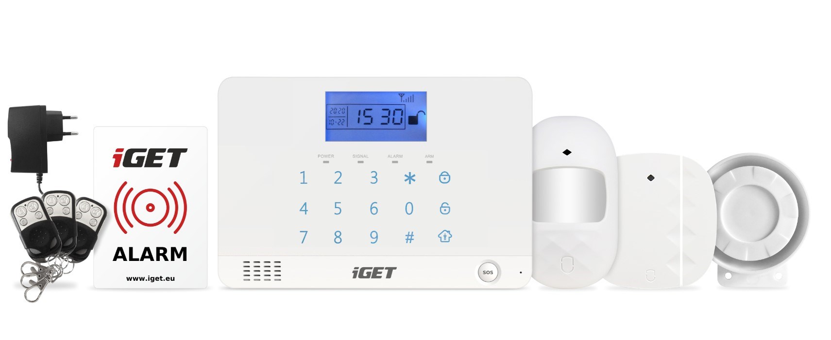 Bezdrátové detektory mají dosah až 80m. Stačí pouze vložit baterie a umístit detektor v prostoru. Aktivace a deaktivace alarmu je rovněž snadná a rychlá. Buď je možné klasické vložení kódu na klávesnici centrální jednotky, použití bezdrátové klíčenky, nebo pomocí aplikace iGET ALARM. Kovové odolné klíčenky slouží jako dálkové ovladače alarmu. Je možné aktivovat/deaktivovat alarm, aktivovat SOS poplach, a aktivovat Režim Doma jen pro některé zóny. Veškerá komunikace bezdrátových detektorů a klíčenek je kódována, komunikace je tak zabezpečena proti případným útokům.