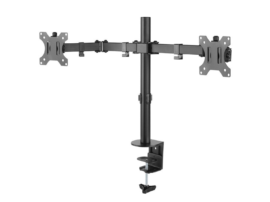 Držák na 2 monitory Fiber Mounts M8C84 Držák s uchycením na okraj stolu na 2 monitory 15-30", nastavení pozice monitorů, kvalitní konstrukce, VESA standardy 75x75 a 100x100, nosnost 16kg Držák pro zavěšení 2 monitorů a uchycení na okraj stolu. Snadná instalace a nastavení monitorů do požadovaných pozic. Držák podporuje VESA standardy 75x75 a 100x100 a zavěsit můžete monitory s celkovou hmotností až 16kg. Držák má kvalitní konstrukci, zavěšení monitorů je naprosto spolehlivé a bezpečné. Dodáváme včetně instalačního materiálu. Záruka 5 let. Stolní držák na 2 monitory Fiber Mounts M8C84 Technické údaje: nosnost 16kg (2 x 8kg) na monitory s úhlopříčkou 15-30" podpora VESA standardů 75x75 a 100x100 délka stolové tyče 390mm nastavitelná výška ramen otáčení do stran +/- 180° naklápění +/- 45° maximální délka ramen 397mm uchycení na okraj stolu, tloušťka stolové desky 10-88mm robustní kovová konstrukce snadná instalace, pevné a bezpečné zavěšení monitorů úchytky na kabeláž instalační materiál barevné provedení černé záruka 5 let Držák na 2 monitory s uchycením na stůl Fiber Mounts M8C84 Držák M8C84 podporuje VESA standardy: VESA 75x75 VESA 100x100 Držák je vhodný na monitory a displeje s úhlopříčkou 15-30", uchycení držáku je možné na stolové desky o síle 10-88mm. Maximální možné celkové zatížení je 16kg, 2 monitory po 8kg.