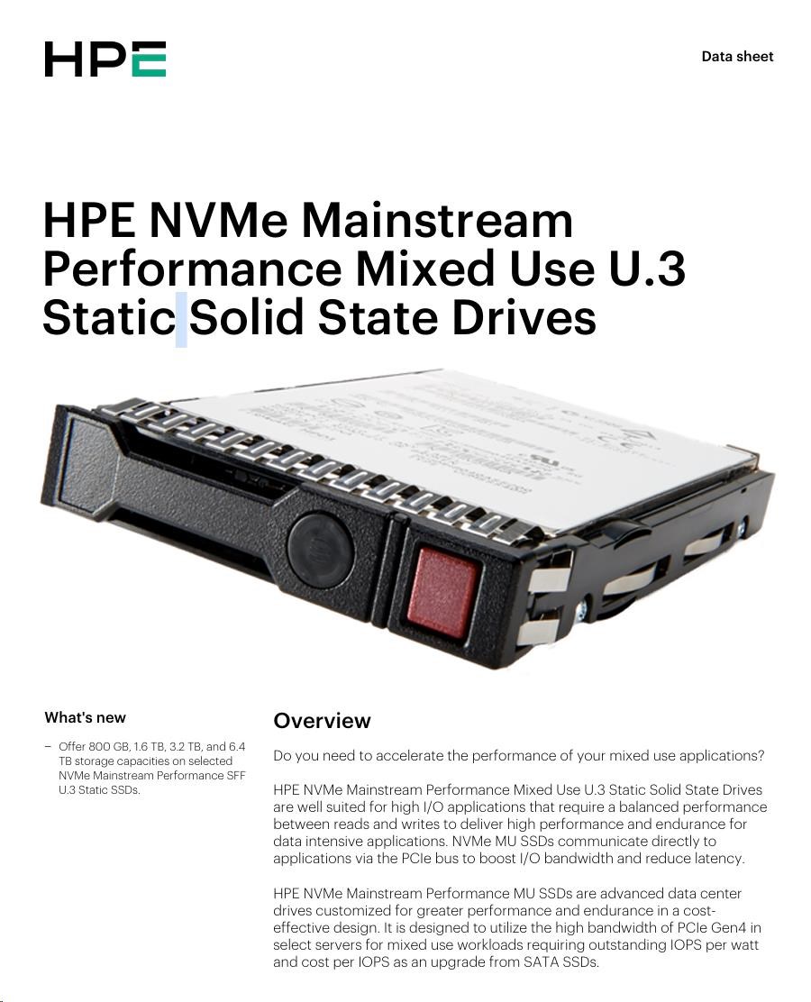 HPE 3.2TB NVMe Gen4 Mainstream Performance Mixed Use SFF BC U.3 Static V2 Multi Vendor SSD P65015-B21 RENEW
