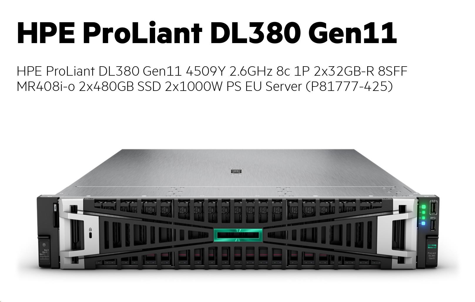 HPE PL DL380g11 4509Y (2.6/8C) 2x32G (p64706) 8SFF MR408i-o 2x480G 2x1000W 4x1Gb NBD333 Smart Choice