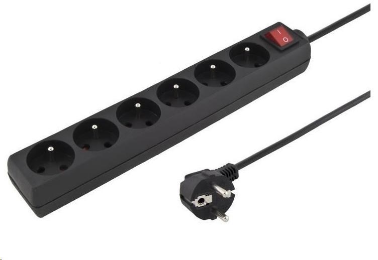 PremiumCord Prodlužovací přívod 230V 5m 6 zásuvek + vypínač, černý