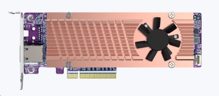 Zařízení QM2-2P410G1T umožňuje snadno přidat k vašemu QNAP NAS disky M.2 NVMe SSD a připojení 10GbE RJ45, bez nutnosti instalace ovladače. Zařízení QM2-2P410G1T je vybaveno řadičem Broadcom a rozhraním PCIe 4.0, takže poskytuje větší šířku pásma pro vyšší výpočetní rychlost a přístup k datům. Zařízení QM2-2P410G1T zvyšuje výkon přidáním M.2 PCIe Gen4 NVMe SSD. Nezabírá 3,5" pozice pro disky, což umožňuje maximalizovat úložnou kapacitu i výkon. Zařízení QM2-2P410G1T disponuje síťovým portem 10GBASE-T Multi-Gigabit (10G / 5G / 2,5G / 1G / 100M), díky němuž vaše zařízení QNAP NAS může získat vysokorychlostní konektivitu 10GbE pro úkoly náročné z hlediska přenosové šířky. S různými switchi QNAP 10GbE můžete snadno provést upgrade na vysokorychlostní síťové prostředí.