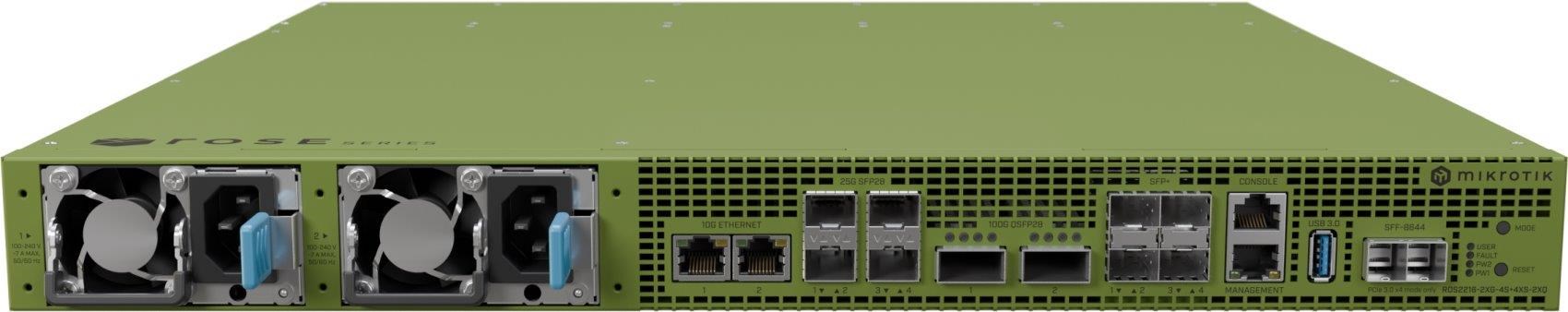 A high-performance, all-in-one storage, networking, and container platform designed for enterprise environments. Third parties control your data. Should they? Your business, your files, your future – handed over to external providers with unclear policies and unknown risks. Stop relying on the cloud. Own your infrastructure. Introducing the Rose Data Server (RDS2216) – a high-performance, all-in-one storage, networking, and container platform designed for enterprise environments. Secure, scalable, and under your control. WHY CHOOSE RDS2216? • 20 U.2 NVMe storage slots – Ultra-fast, high-density storage for demanding workloads. • 100G high-speed networking – 2× 100G QSFP28 ports, 4× 25G SFP28 ports, 4× 10G SFP+ ports, 2× 10G Ethernet ports, and an extra SFF-8644 interface for flexible connectivity. • 16-core 2 GHz ARM CPU + 32GB DDR4 RAM – High-performance processing for networking, storage, and virtualization. • Massive energy savings – Cut power consumption and heat output while maintaining high performance – an eco-friendly solution for data-heavy environments. • Runs RouterOS – The most flexible, modular networking OS. Supports advanced storage capabilities, including exporting block devices over NVMe-TCP, encryption layers, and modular storage configurations for scalable infrastructure. No subscriptions. No paywalls. • Container & VM-ready – Run MinIO, Nextcloud, Shinobi, Frigate, and other applications with ease. We’ve added two USB ports for additional devices and further adaptability. • Includes dual hot-swappable power supplies – Ensuring uninterrupted operation and quick replacement without unnecessary downtime. ONE DEVICE. ENDLESS POSSIBILITIES It’s a breakthrough in flexible networking and storage for the most demanding enterprise environments. Reliable 100-Gigabit connectivity. Ultra-fast NVMe storage support. Containers. Enterprise-grade performance. Konektory a rozhraní Počet M.2 slotů 2 Počet U.2 PCIe slotů 20 Rychlost LAN (2) 1/2.5/5/10Gbps + (1) 10/100/1000Mbps management Rozhraní M.2 SATA, U.2 PCIe Gen3 Počet USB 2.0 1 Počet USB 3.0/3.1/3.2 Gen1 1 Napájení Typ napájení Ze sítě (230V) Redundantní napájení Ano Max. spotřeba energie [W] 286 Fyzické charakteristiky Provedení Rackmount Počet "U" pozic 1 Provozní teplota [°C] -20 až 50 Hloubka [mm] 476 Šířka [mm] 443 Výška [mm] 44 Hardware Počet podporovaných HDD 22 Formát disku M.2 2280, 2.5" CPU AL73400 Frekvence CPU [MHz] 2000 Počet CPU jader 16 Interní uložiště 32 MB + 128 MB RAM 32 GB Obecné Podpora rozšiřovacích jednotek Ano Software Operační systém RouterOS - L6