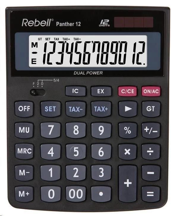 Stolní kalkulačka s obchodními funkcemi3 paměťové klávesyfunkce TAX pro výpočty daněMark Up pro výpočet maržeGrand Total pro celkový součetkorekční tlačítko pro smazání poslední číslicezaokrouhlovánírozměry 147×115×32 mmhmotnost 126 g