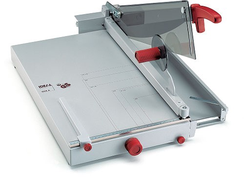 Precizní páková řezačka s kompletní výbavou a délkou řezu až58 cm. Odměr vpravo i vlevo od místa řezu. Kvalitní nůž Solingen,bezpečnostní kryt z nerozbitného Lexanu. Možnost aretace pravého dorazu.Řezačka je vybavena mechanismem pro přesný odměr odřezávaného materiáluv rozsahu 1–10 mm, který spočívá v tom, že při pohybu nože dolů seautomaticky odklápí dorazová hrana a uvolňuje místo noži. Tloušťkařezu: 40 listů papíru 70g/m2. Přítlak stohu: ruční lis. Rozměry v x šx h: 260×410×790 mm. Hmotnost: 14 kg.