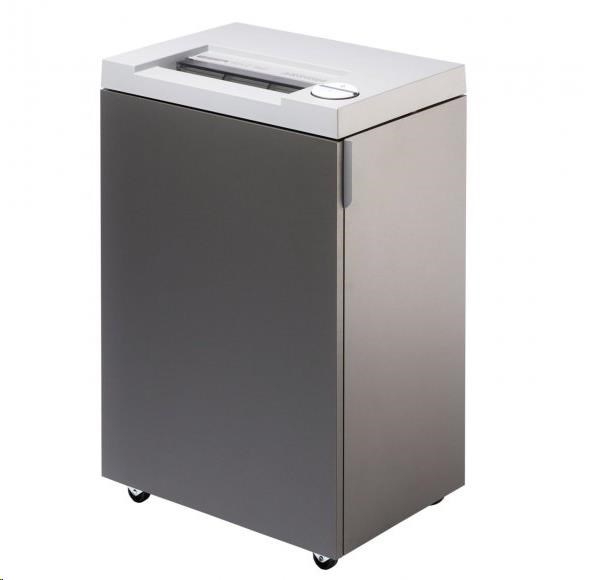 Komfortní obsluha. Výkonný skartovač se vstupní šířkou 240 mm pro intezivní využití. Nově integrována světelná indikace zátěže stroje. Kapacita skartace až 21 listů 70g/m2 papíru v řezu 4 mm. Popis: „SPS“ – patentované bezpečnostní a ochranné funkce: elektronicky řízená jistící klapka v místě vstupu, automatický zpětný chod při ucpání papírem a následné vypnutí, automatické vypnutí po naplnění odpadní nádoby, elektronická kontrola uzavření dvířek podstavy, dvoustupňové jištění motoru, úsporný režim „ZERO ENERGY“ (absolutní vypnutí odběru el. energie po 30 min ve stavu Stand-by). Vícefunkční přepínač „EASY-SWITCH“ s přehledným menu a barevnou světelnou signalizací provozu a indikací míry zátěže, automatická start/stop funkce pomocí optického senzoru, nože z tvrzené speciální oceli odolné vůči kancelářským sponkám a kreditním kartám, výkonný motor 390 W, vysoce kvalitní dřevěná skříňka (objem 50L) s odolným kováním a kolečky pro pojezd, mechanicky odolný snadno uchopitelný plastový odpadní koš objemu 35 L, vyrobeno v Německu. Rozměry (V x Š x H): 635×395×291 mm. Hmotnost: 21 kg.
