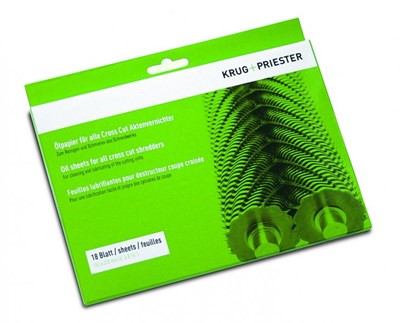 Pro čištění a údržbu skartovacího mechanismu, obzvláště vhodné pro stroje s křížovým řezem. Prodlužuje životnost stroje a udržuje mechanismus v optimálním výkonu. Prostým skartováním dojde k aplikaci speciálního oleje na kovové části skartovacích válců. Olej je uzavřen v papírové kapse, dostane se ven až při skartování. Balení obsahuje 18 listů formátu A5.