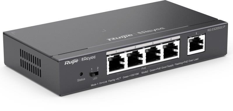 Registrace dealerské ceny: https://docs.google.com/forms/d/1sWwsswsbBk36eZx4CJrfl47qUvrORQyYz7kMjrt2f_c/prefill Popis produktu Inteligentní cloudově i přes webové rozhraní spravovatelný smart desktop PoE switch RG-ES205GC-P od značky Ruijie, nabízí cenově efektivní řešení s 5 Gigabit LAN porty z čehož 4 porty podporují 802.3af/at PoE s celkovým PoE budgetem 54 W. Tento kompaktní přepínač je ideální pro síťové aplikace, které vyžadují výkon a spolehlivost. Co se výčtu funkcí týče, switch nabízí tichý chod bez ventilátorů, podporu až 16 VLAN, DHCP snooping, testování kabelu, ochranou proti zakruhování a v rámci PoE možnost použití až na vzdálenost 250 m při snížení linkové rychlosti na 10 Mbps. Klíčové vlastnosti • 5× 10/100/1000 Mbps LAN porty • 4× 802.3af/at PoE - max. 30 W/port, PoE budget 54 W • Kvalitní provedení, kovové šasi • Bez venilátoru • Nízká spotřeba - max. 6 W • Správa přes webové rozhraní a cloud • Celoživotní správa na Ruijie Cloud kdykoli a kdekoli • Rozpoznávání IP kamer - jedinečná hodnota pro CCTV síť • Automatická prevence proti zakruhování • Podpora Long Range PoE na vzdálenost 250 m Obsah balení • Zařízení • Napájecí adaptér 5 4V/1.1 A Technické parametry Konektory a rozhraní Rychlost LAN:(5) 10/100/1000Mbps Napájení Typ napájení:DC konektor Typy PoE:PoE-Out (pouze) Podporované PoE-Out standardy:802.3af, 802.3at Počet PoE Out portů:4 PoE budget [W]:54 PoE na vzdálenost až 250m:Ano Max. spotřeba energie [W]:6 Napájení přes konektor/svorkovnici:54V / 1,1A Fyzické charakteristiky Provedení:Desktop Ventilátory:Bez ventilátoru Šasi:Kovové Tlačítka:Reset Provozní teplota [°C]:0 až 40 Šířka [mm]:148 Výška [mm]:26 Hloubka [mm]:78 Obecné Rychlost přepínání [Gbps]:10 Tabulka MAC adres:2000 Rychlost předávání paketů [Mpps]:7,4 Software Web management:Ano Management:Webové rozhraní, Ruijie cloud Funkce:VLAN, DHCP snooping Výchozí IP adresa:10.44.77.200 Výchozí jméno a heslo:Nastavuje se při prvním spuštění