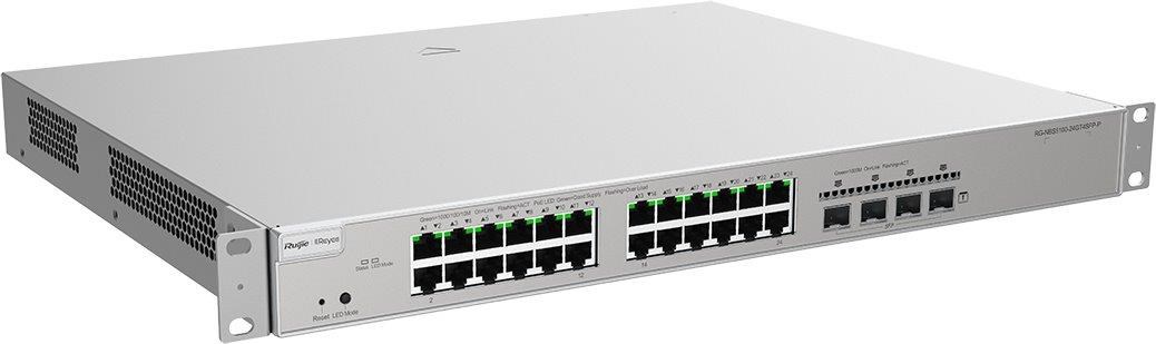 Registrace dealerské ceny: https://docs.google.com/forms/d/1sWwsswsbBk36eZx4CJrfl47qUvrORQyYz7kMjrt2f_c/prefill Popis produktu Inteligentní cloudově i přes webové rozhraní spravovatelný Enterprise L3 chytrý rackmount PoE switch RG-NBS5200-24GT4XS-P od značky Ruijie, nabízí řešení s 24 Gigabit LAN porty, které podporují 802.3af/at PoE s celkovým PoE budgetem 370 W a 4 SFP+ porty pro zapojení 1G i 10G optických modulů. Tento switch je ideální pro síťové aplikace, které vyžadují výkon, spolehlivost a dostatečný počet portů. Co se výčtu funkcí týče, switch nabízí podporu statického L3 routování, VLAN, DHCP snooping, RSTP, IGMP, SNMP, agregaci portů, testování kabelu a další. Klíčové vlastnosti • 24× 10/100/1000 Mbps LAN port • 4× SFP+ port • 24× 802.3af/at PoE - max. 30 W/port, PoE budget 370 W • Kvalitní rackmount provedení, kovové šasi • 2× Ventilátor s adaptivní rychlostí • Správa přes webové rozhraní a cloud • Celoživotní správa na Ruijie Cloud kdykoli a kdekoli • Rozpoznávání IP kamer - jedinečná hodnota pro CCTV síť • Podpora L3 routování a dalších funkcí Obsah balení • Zařízení • Úchyty do 19" racku • Napájecí kabel Technické parametry Konektory a rozhraní Rychlost LAN:(24) 10/100/1000Mbps Optické rozhraní:(4) 1G/10Gbps Napájení Typ napájení:Ze sítě (230V) Typy PoE:PoE-Out (pouze) Podporované PoE-Out standardy:802.3af, 802.3at Počet PoE Out portů:24 PoE budget [W]:370 Max. spotřeba energie [W]:432 Napájení přes konektor/svorkovnici:230V AC Fyzické charakteristiky Provedení:Rackmount Ventilátory:(2) 40 x 40 mm Šasi:Kovové Tlačítka:Reset, LED Provozní teplota [°C]:0 až 50 Šířka [mm]:440 Výška [mm]:44 Hloubka [mm]:358 Obecné Rychlost přepínání [Gbps]:128 Tabulka MAC adres:16000 Jumbo rámec [Bytes]:9216 Rychlost předávání paketů [Mpps]:96 Software Web management:Ano Management:Webové rozhraní, Ruijie cloud Funkce:VLAN, DHCP snooping, L3 Výchozí IP adresa:10.44.77.200 Výchozí jméno a heslo:Nastavuje se při prvním spuštění