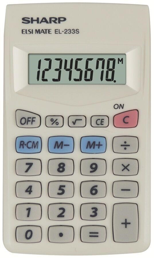 Pocket calculator with compact design, large LCD display(8 digits), square root and percentage calculations.