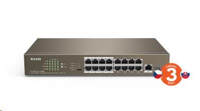 Tenda TEF1118P-16-150W přepíná data pomocí 17ti portů RJ45/SFP, 16 portů 10/100 Mb/s podporuje PoE802.3af/at + 1 Combo port pro Uplink (buď 1xRJ45 10/100/1000 Mb/s nebo 1xSFP 100/1000 Mb/s). Switch má ochranu proti přepětí 6kV. Podpora přepojování uzlů v módu Store-and-Forward a Cut-throught. Full-duplex kontrola toku 802.3x, half-duplex kontrola toku v režimu Back-Pressure.