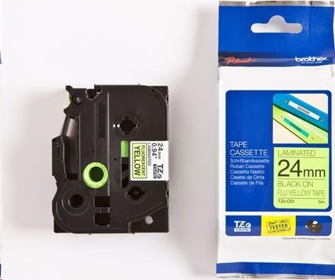 BROTHER TZEC51 - kazeta TZ šířky 24mm, laminovaná TZE-C51, signální žlutá/černé písmo