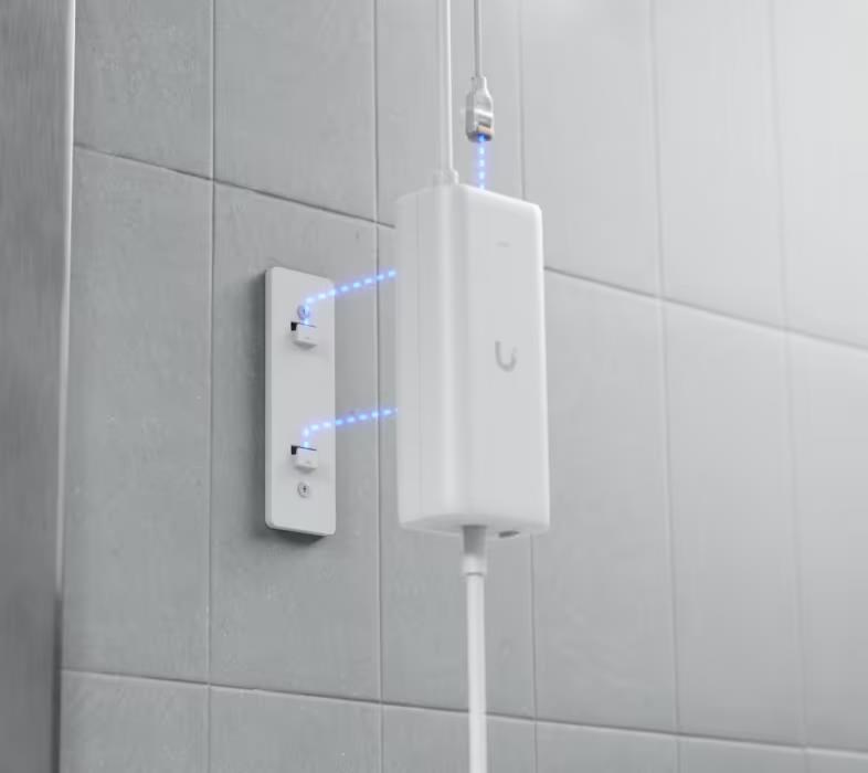 An AC adapter with integrated PoE, enabling the UniFi Cloud Gateway device to support PoE output on a single port. Delivers up to 30W of PoE+ Supports wall mount, DIN rail and floating mount* Lockable latch designed for power cord security *DIN rail and floating mount sold separately Compatibility: UXG-Lite , UX , UXG-Max , UCG-Max , UCG-Ultra