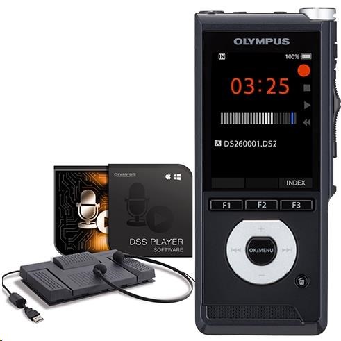 Digitální záznamník, výměnná paměť SD, formát záznamu DSS Pro, přes 300 hodin záznamu (na 2GB kartu SD), 5 složek až na 200 souborů, editační funkce: přepis, vložení, mazání, 3 programovatelná tlačítka, přímé diktovaní do PC, balení: záznamník, pouzdro, 2GB karta SD, alkalické baterie, DSS Player Software, USB kabel