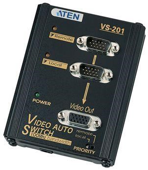 Video elektronický přepínač 2 PC - 1 VGA Aten VS-201 - možnost stanovit prioritu signálu, ze kterého PC má přednost - přepínač priority vstupu, který přepíná zvolený vstup na výstup - auto identifikace aktivního vstupu - signalizace stavu pomocí LED - šířka videopásma 100Mhz, až 1920x1440 85Hz DDC2, DDC2B - podpora VGA, XGA. SVGA, UXGA a multisync monitorů - zesiluje VGA signál až na 65m - maximální délka kabelu 65m - power save mod při vypnutém PC - aktivní prvek, včetně napájecího adaptéru konektory vstup 2x15pin HDB 2x Male výstup 15pin HDB 1x Female váha 190g rozměry 104x98x24mm