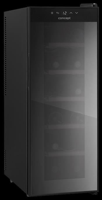 Pro milovníky vína Pokud patříte mezi milovníky vína, zajisté víte, že nesprávné skladování může výrazně ovlivnit jeho výslednou chuť. Vinotéka Concept VTE3012 se o vaše oblíbené lahve postará tím nejlepším způsobem. Díky svému atraktivními designu a kompaktní velikosti ji snadno umístíte do každé domácnosti. Je vybavena 5 nerezovým policemi s elegantním dřevěným madlem, které pojmou až 12 lahví vína či jiného oblíbeného nápoje. Pomocí dotykového panelu můžete jednoduše regulovat vnitřní teplotu v rozmezí od 12 do 18 °C. Dopřejte svému vínu tu nejlepší péči. Extra tichý chod Díky absenci kompresoru se vinotéka řadí mezi extra tiché spotřebiče. S hlučností pouhých 25 dB ji můžete umístit kamkoliv, aniž by vás svým provozem jakkoli rušila. Dotykové ovládání Dotykový panel na čelní straně vinotéky zaručuje pohodlné a intuitivní ovládání. Jemným dotykem můžete regulovat vnitřní teplotu, přepínat mezi jednotkami stupňů Celsia a Fahrenheita a ovládat vnitřní světlo. Díky displeji máte neustálý přehled o aktuálně nastavené teplotě. Termoelektrické chlazení Vinotéka VTE3012 je vybavena moderní termoelektrickou technologií chlazení, která se vyznačuje vysokou účinností, mimořádnou spolehlivostí, tichým provozem a nízkou spotřebou energie. Vnitřní LED osvětlení Moderní LED osvětlení bílé barvy dokonale nasvítí vnitřní prostor vinotéky, takže budete mít neustálou kontrolu nad jejím obsahem bez nutnosti otevírání dveří. Tento typ osvětlení je velmi úsporný a díky nulovému výdeji tepla nedochází ke zvyšování teploty uvnitř spotřebiče. Technické parametry: Energetická třída F Povrch dveří – zrcadlové sklo Celkový užitný objem: 38 l Počet lahví: 12 Max. výška skladovaných lahví při uložení vleže: 35 cm Vnitřní barva: černá Nerezové police s dřevěným madlem Teplotní rozsah: 12°C – 18°C Displej – bílý Dotykové ovládání Zobrazení teploty ve °C nebo °F Hlučnost: 25 dB Vnitřní LED osvětlení Typ chlazení: termoelektrické Spotřeba 0,252 kWh/den, 92 kWh/rok Příslušenství: Výška: 742 mm Šířka: 275 mm Hloubka: 550 mm Vnitřní rozměry (v x š x h): 610 x 175 x 350 mm Netto hmotnost: 16,85 kg Napětí: 220–240 V ~ 50 Hz Příkon: 55 W Vinotéka je včetně připojovacího kabelu