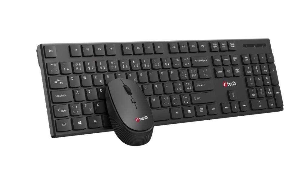 Bezdrátový set klávesnice a myši C-TECH WLKMC-03 přináší pohodlí a svobodu pohybu bez rušivých kabelů. Díky spolehlivé 2,4GHz bezdrátové technologii získáte stabilní a rychlé připojení s dosahem až 10 metrů, což zajišťuje plynulou práci bez výpadků. Stačí připojit kompaktní USB-A přijímač do portu vašeho počítače a můžete ihned začít pracovat – není potřeba žádná složitá instalace díky technologii Plug & Play.