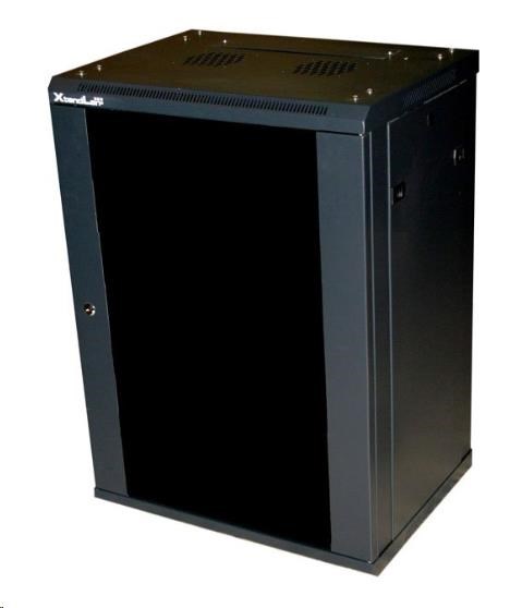 XtendLan 19" nástěnný rozvaděč 12U 600x450, nosnost 60 kg, skleněné kouřové dveře, svařovaný, černý