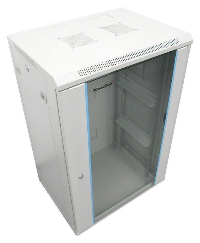 XtendLan 19" nástěnný rozvaděč 18U 600x450, nosnost 60 kg, skleněné dveře, svařovaný, šedý