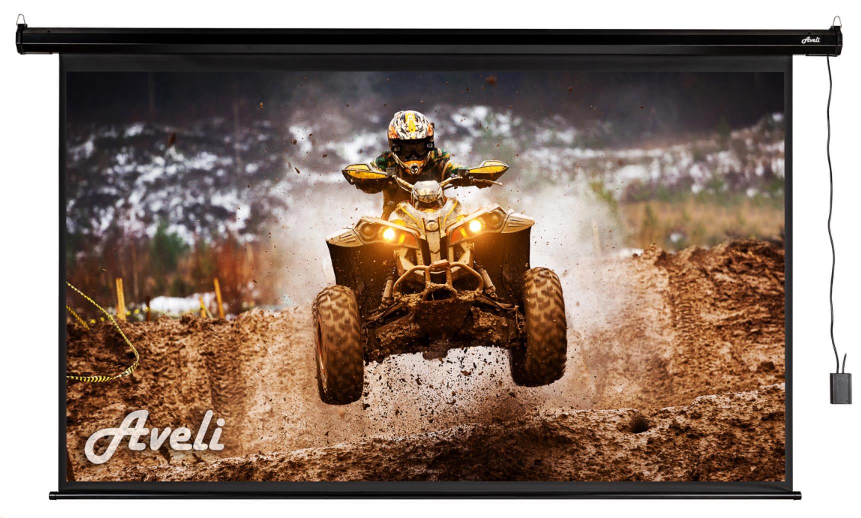 Elektrické projekční plátno AVELI, 221x125 (16:9) 100", černý tubus