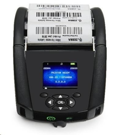 mobilná tlačiareň, priama termálna, 8 bodov/mm (203 dpi), šírka média (max.): 79 mm, šírka tlače (max.): 72 mm, priemer rolky (max.): 66 mm, rýchlosť (max.): 115 mm/s., Bluetooth, Wi-Fi (802.11ac), Senzor preberaného štítku, displej, Senzor čiernej značky, Senzor medzery, EPL, ZPL, ZPLII, CPCL, RAM: 256 MB, Flash: 512 MB, vrátane.: ramenný popruh, batéria, rozšírená, 4900 mAh.